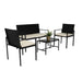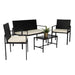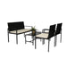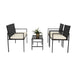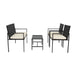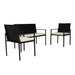 Juego de Sala Exterior, Elaborado en Rattan Sintético el set incluye mesa y tres sillas de una plaza, en Color Negro y Blanco.