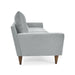 Cuenta con una línea de diseño moderna de líneas que denotan movimiento. Su estructura en madera pino brinda estabilidad y ligereza, tapizado en tela poliéster de excelente calidad, relleno con espuma de alta densidad, cuenta con patas cónicas en madera natural con acabado en laca brillante.