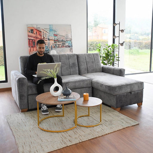 Sala en L Apolo Derecho 220x160x92 con Baul Gris
