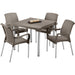 Silla SHIA apariencia Rattan, con tejido perforado que imita el tejido artesanal. Exclusiva mezcla de materiales y patas en aluminio que no se oxidan. Con tacón antideslizante. Cómoda y ergonómica. Beneficios: Con tejido perforado que imita el tejido artesanal. Patas de aluminio que no se oxidan. Con tacón antideslizante. Soporta hasta 115kg repartidos de manera uniforme
