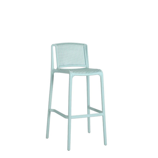 Silla para Bar Sovalla, Color Azul claro, Con espaldar redondo transpirable y diseño minimalista