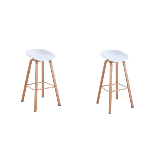 Kit de Dos Sillas Bar Dary, Blanco y Café Claro, con base metal y diseño moderno