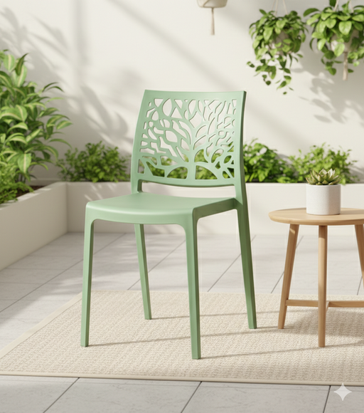 Silla Harlem, Verde, Con espaldar en forma de árbol y diseño minimalista