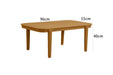 Sus medidas son: Mesa: Alto: 40 cm Ancho: 96 cm Fondo: 55 cm Banco: Alto: 81,5 cm Ancho: 125 cm Fondo: 54,5 cm