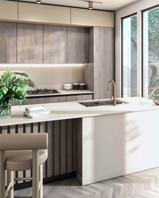 Meganiteen stockSuperficie sólida acrílica Modern Calacatta, formato 3.66x0.76x0.012 mm maciza, no porosa, color homogeneo, que se puede termoformar y trabajar con...