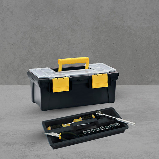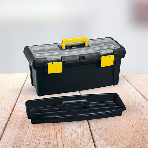 Caja herramientas 14" con tapa organizadora cerradura plástica negro marca Rimax