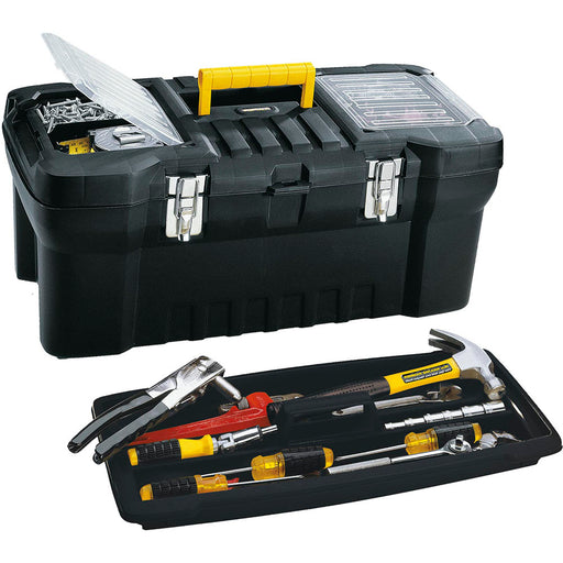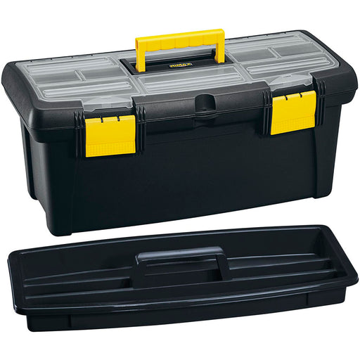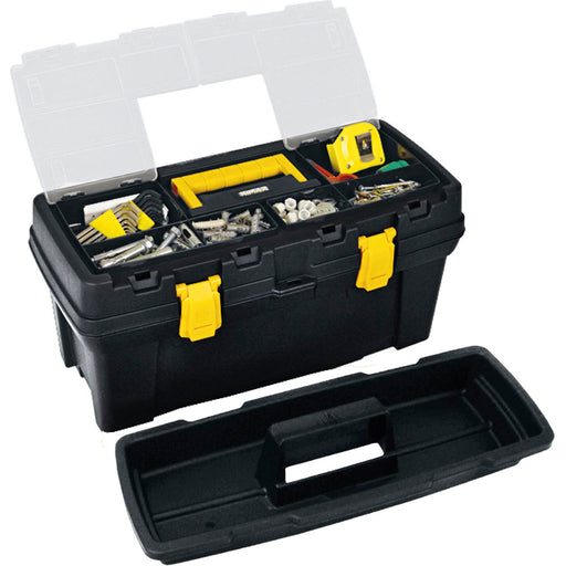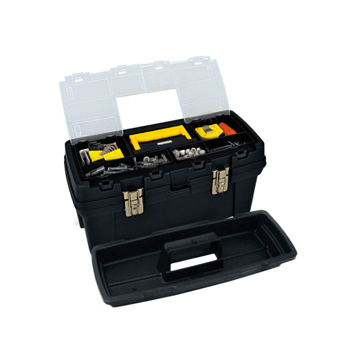 Caja herramientas 22" con tapa organizadora cerradura plástica negro marca Rimax