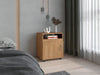 Mesa de noche, con superficie para objetos decorativos, una puerta abatible, facil de ensamblar e instalar.