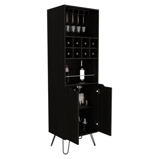 Virtual Mueblesen stockBar, con variedad de entrepaños, espacio para botellas y copas, 2 puertas batientes, y patas metálicas. Elaborado en Madera aglomerada MDP, recub...