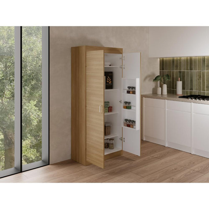 Alacena Varese, Fresno Europeo y Blanco, con dos puertas y cuatro entrepaños
