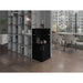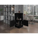 Bar bajo, con espacio para colocar objetos decorativos, espacio para organizar licores, dos puertas batientes.