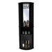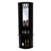 Bar esquinero, con colgador de copas, dos puertas de vidrio, espejo, espacio para almacenar botellas y objetos del barElaborado en Madera aglomerada MDP, recubierta con láminas melamínicas de excelente calidad, en color Wengue.