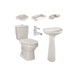 - Componentes: Sanitario de dos piezas, Lavamanos con pedestal, Accesorios y Grifería