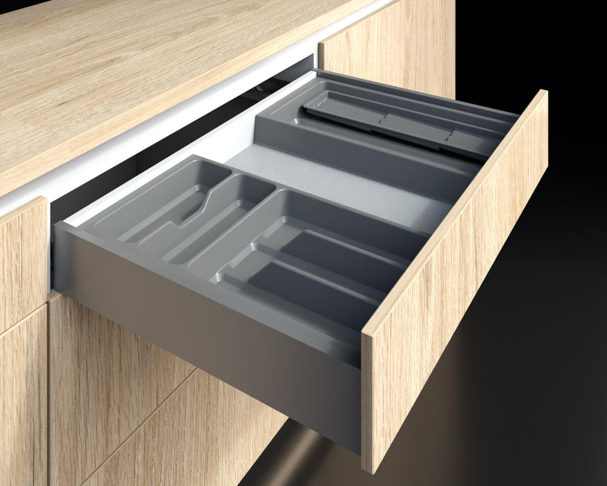 Cubiertero organizador para cajón gris antracita a5 240X540X50 mm, fabricado en ABS ideal para adaptarse al interior del cajón con profundidad de 500 mm su diseño optimiza el espacio y mantiene los utensilios al alcance de la mano. Suministro, un cubiertero.