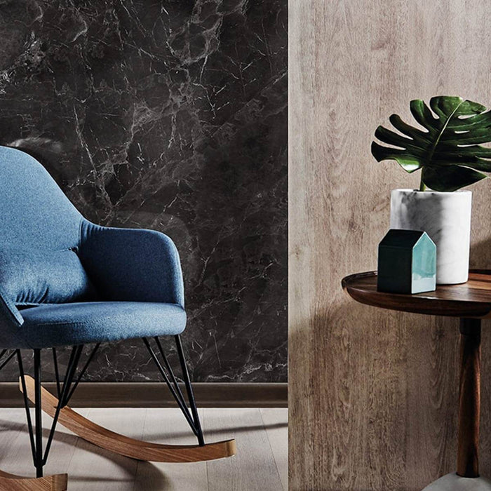 Laminado de alta presión color Black marquina Calibre_0.8 mm, Posformable Es una lámina compuesta por papel decorativo impregnado con resina de melamina, diseñada para recubrir superficies con máxima resistencia al impacto, desgaste, rayado y abrasión, ofreciendo durabilidad, estética y protección en cualquier aplicación. Nota importante : Se recomienda trabajar laminado en las dos caras de la superficie para evitar el pandeo.