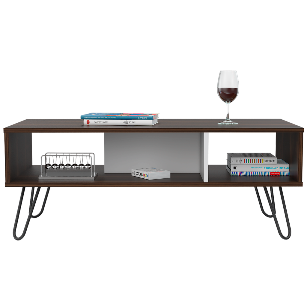 Mesa de centro lara, caoba y blanco, con amplio espacio y patas de acero