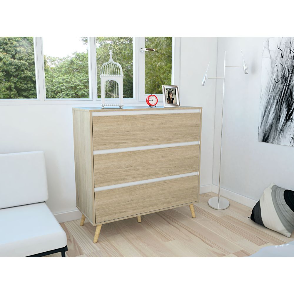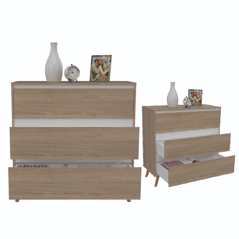 Organizador durham, beige y blanco, con tres cajones amplios y patas en madera x2